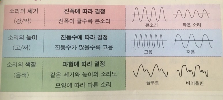 소리는 밖에서 들려지는 결과물입니다. 몸 안에서가 아닌 몸 밖에서의 결과물이란 것입니다. 중학교 음악교과서에 실린 소리의 3요소에 대해서 이야기해보려고 합니다. 아래의 사진은 음악교과서에서 직접 발췌했으며 소리와 음악의 상관관계에 대해 궁금하신 분들은 참고하시길 바랍니다.