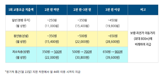 (단, 주민등록상 주소지 정상인 경우, 알뜰교통카드 앱 가입 첫 달은 대중교통 이용횟수 무관)
