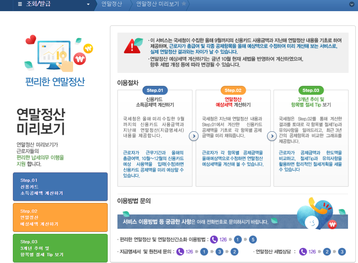 홈택스 연말정산간소화 서비스를 통해 개인 자료 조회 및 소득공제 신고서 작성 등을 하실 수 있습니다.