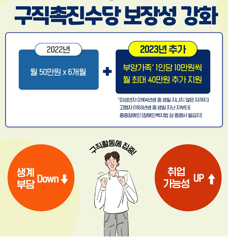 •Ⅰ유형: 잔여 구직촉진수당의 50% 지급 * 부양가족 추가수당 제외