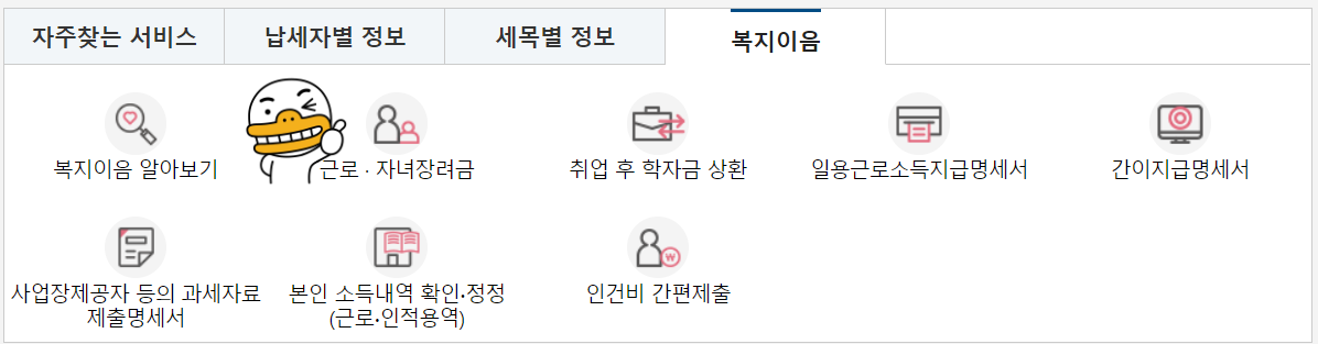 (2) '손택스 신청화면' 연결