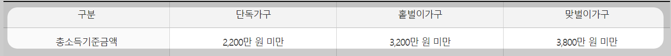 위의 표를 참조하시길 바랍니다. 각 가구별 연간근로소득이 부부합산 기준금액 미만이여야 합니다.