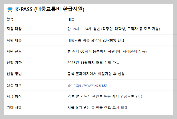 1. K-PASS (대중교통비 환급지원) 혜택 내용