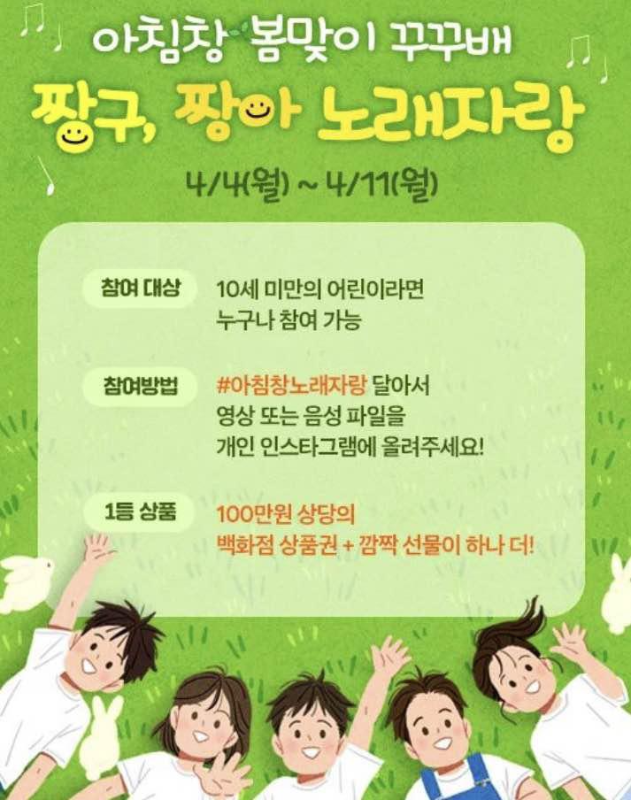 우리 아이 노래 뽐내고 100만 원 받자!!
